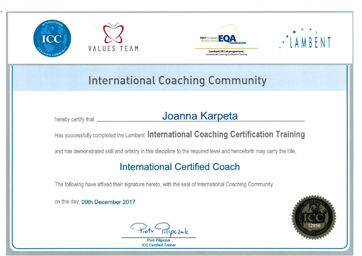 Nazywam się Joanna Karpeta. Od ponad 20 lat wspieram ludzi, którzy z pozoru ogarniają wszystko – a w środku czują, że są o krok od pęknięcia. Pomagam bezpiecznie spuścić napięcie z głowy i z ciała, zanim relacje albo praca zapłacą za to najwyższą cenę.